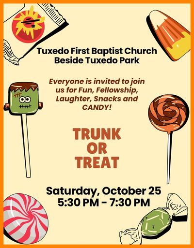 It’s time for our annual Trunk and Treat! Bring the kids to enjoy some fun and laughter! We will have our trunks ready with lots of goodies! See you then!